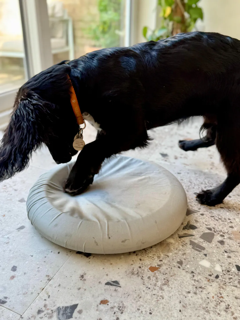 It’s a great concept and fab that it’s so portable and quick to move from room to room - this perplexes and intrigues my dog and he always seems aghast when he comes across it in unexpected locations around the house. A treat or two placed underneath are necessary to encourage the drive of dig and I’ve found that large knotted fish skins work well as they are perceptible via smell yet are tantalisingly out of reach with only a light tactile sensation on through the paws to encourage the further need to dig